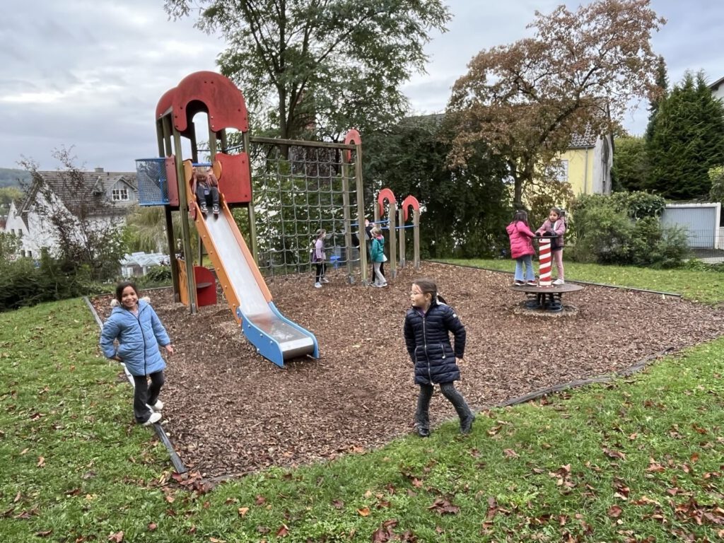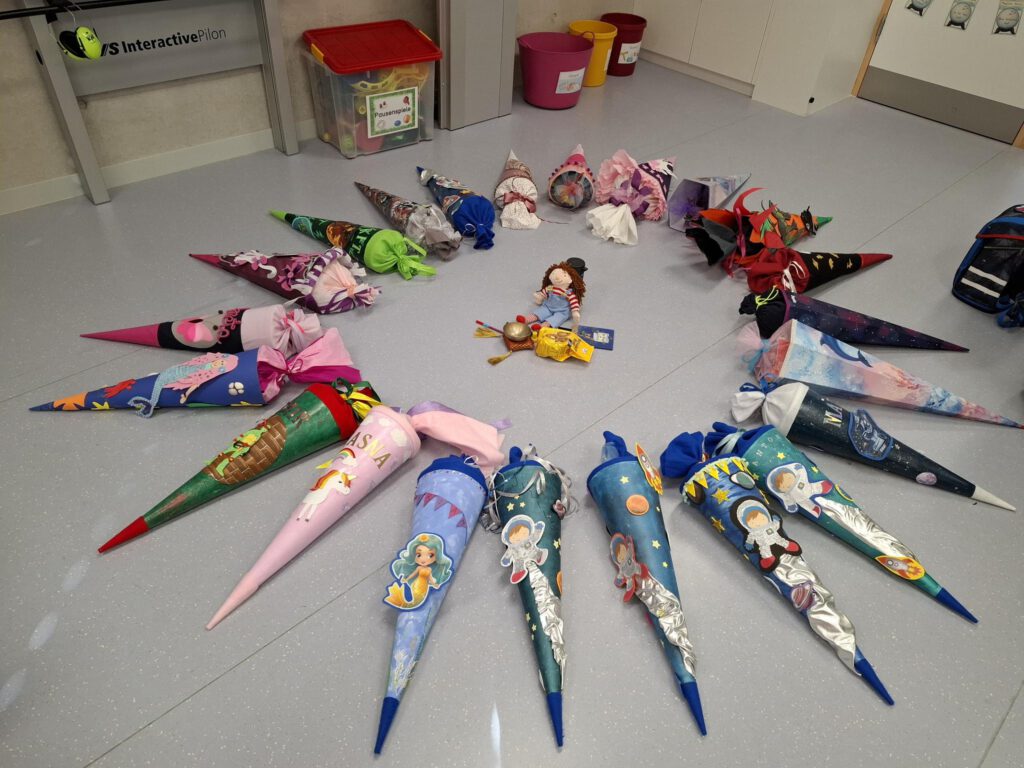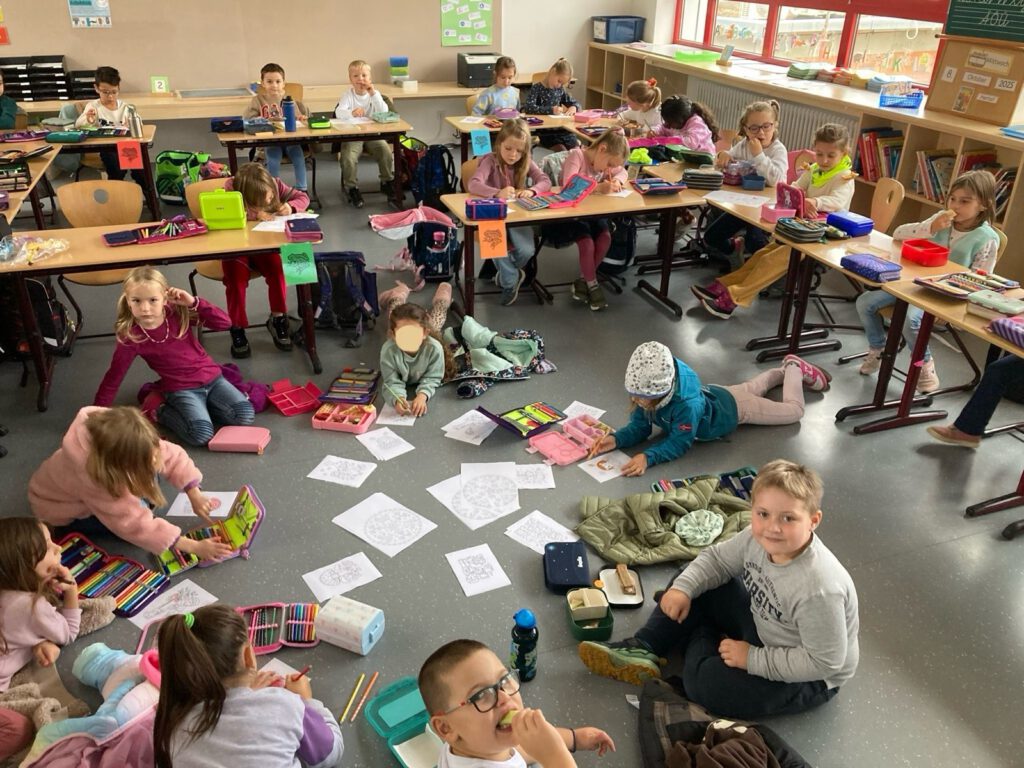 Kaum zu glauben, schon 30 Tage sind seit der Einschulung vergangen. Unsere Erstklässler sind zu richtigen Schulkindern geworden – mit eigenen Schultaschen und der wachsenden Fähigkeit, den Alltag selbstständig zu meistern. Die Pausen sind ein Highlight: Jede Klasse darf einmal pro Woche die Pause auf dem Spielplatz verbringen. Mittwochs gibt es bei Frau Dempewolf eine stille Pause, in der in Ruhe gemalt und ausgeruht wird.