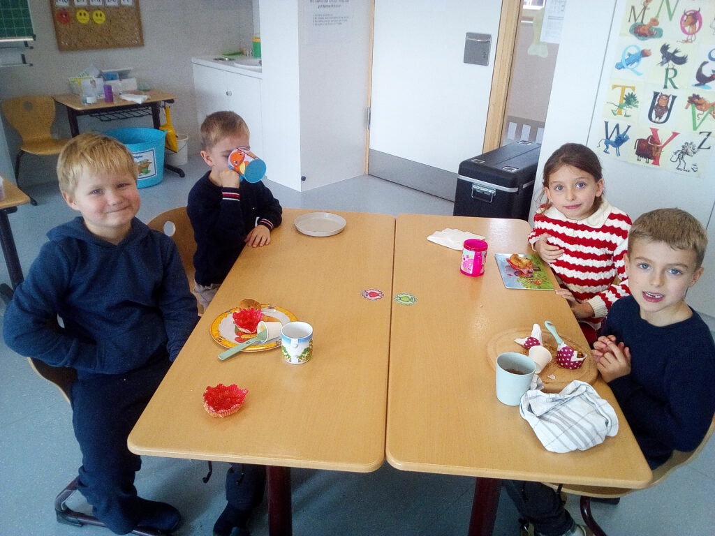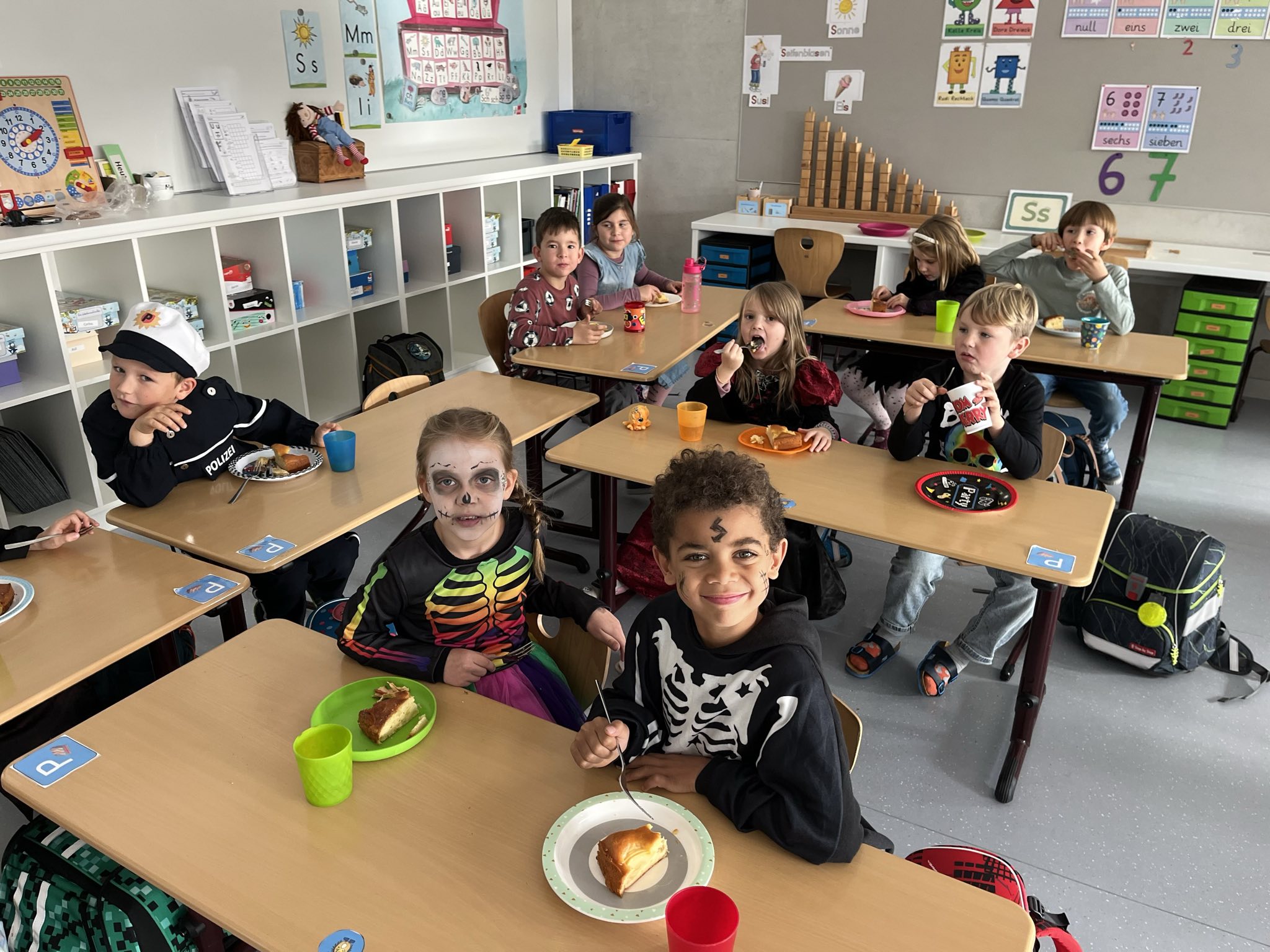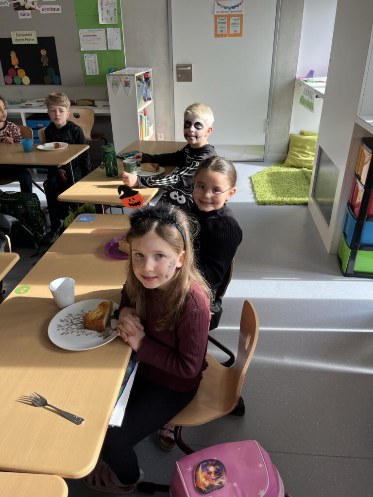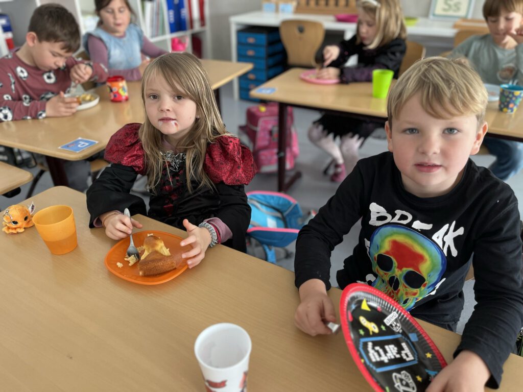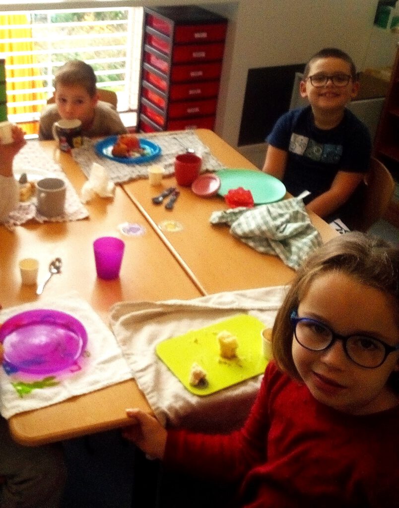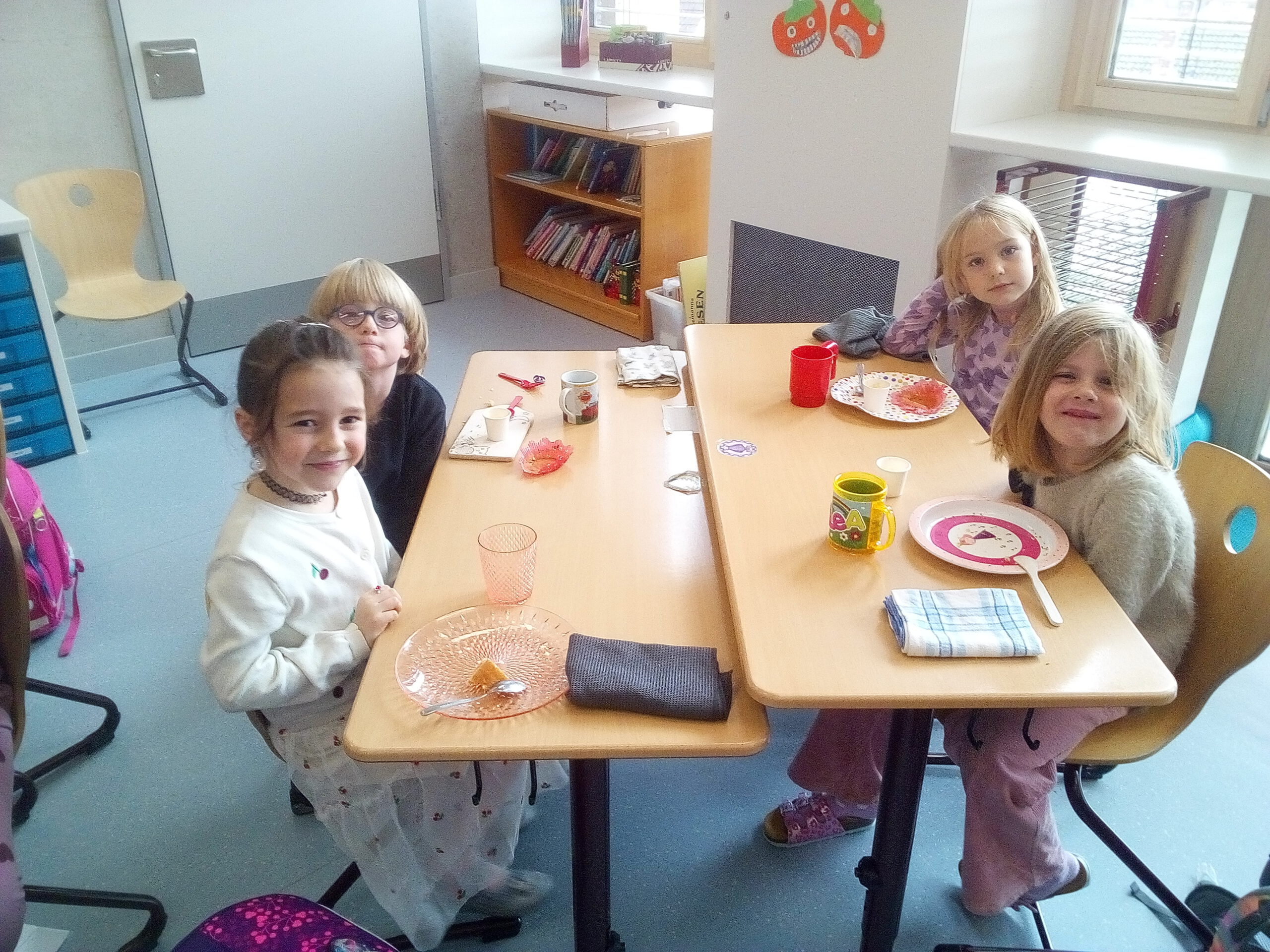 Dass man aus Äpfeln auch viele leckere und abwechslungsreiche Produkte herstellen kann, durften die Kinder schließlich bei einem Apfelfrühstück selbst ausprobieren. Die Schüler brachten viele Spezialitäten mit in die Schule. Neben Apfelkuchen, -marmelade, -mus und -chips gab es auch verschiedene Apfelsäfte und Apfeltee. Besonders beim Apfelmus, bemerkten die Kinder, dass dieses auch ganz unterschiedlich schmecken kann.