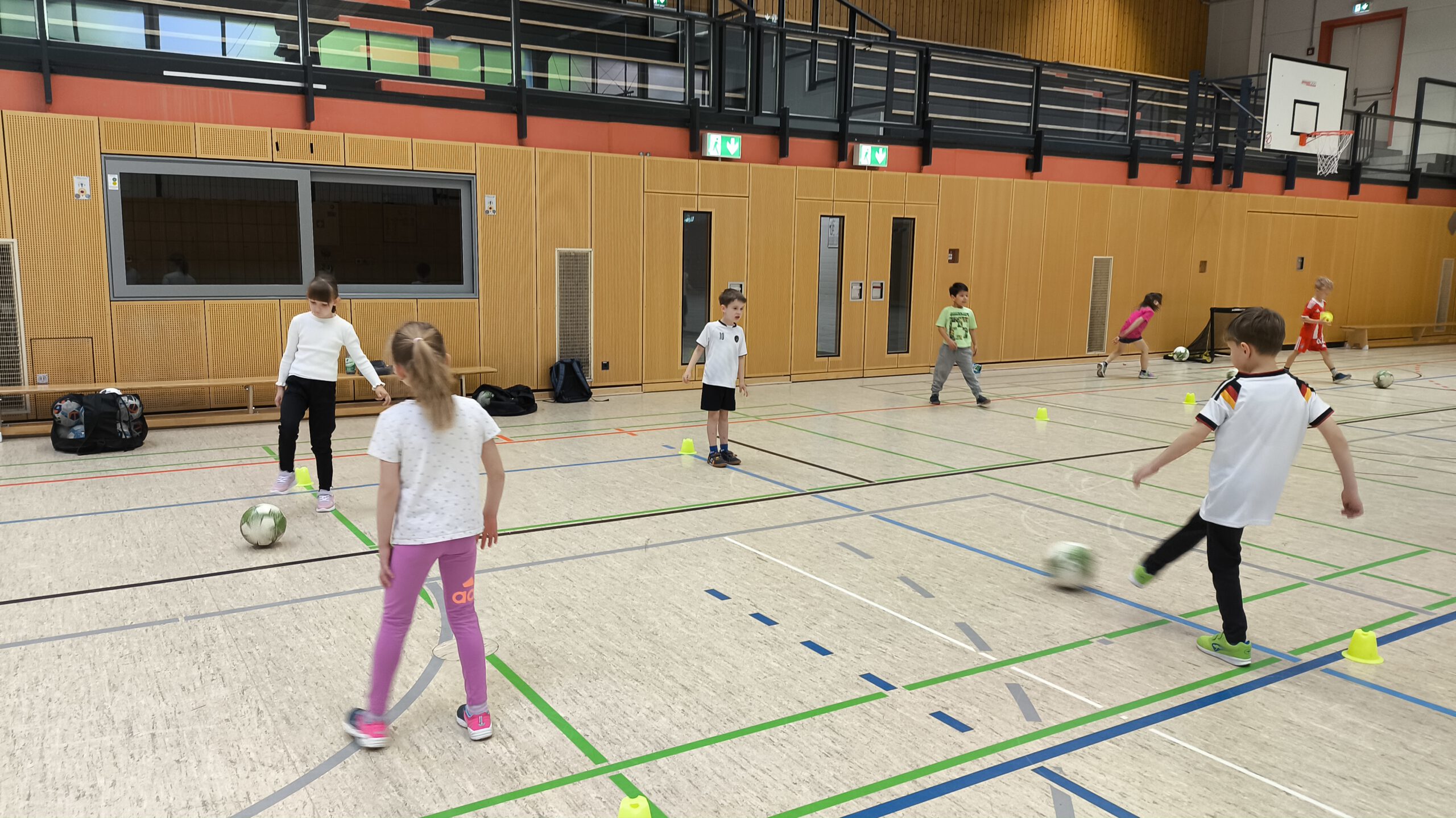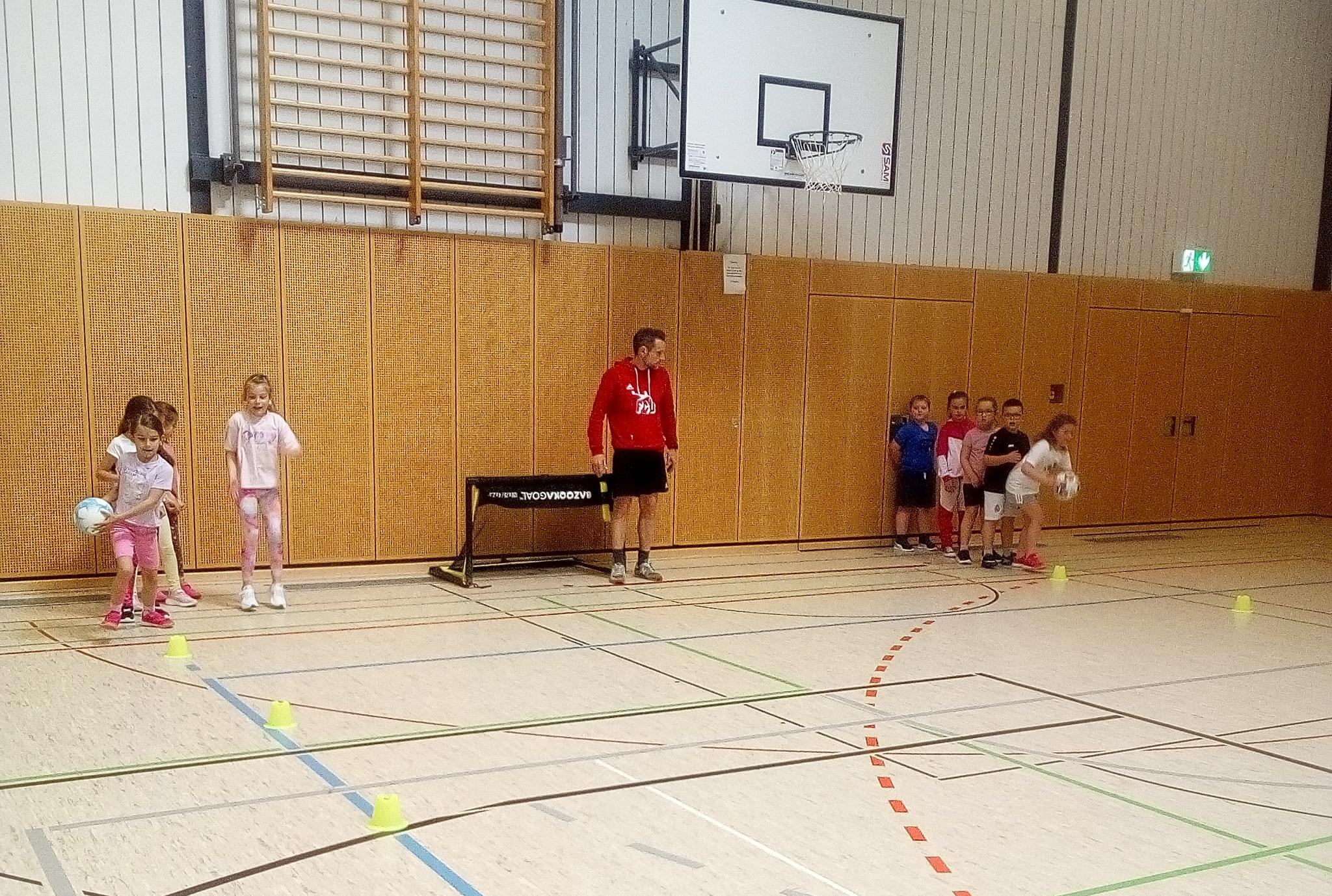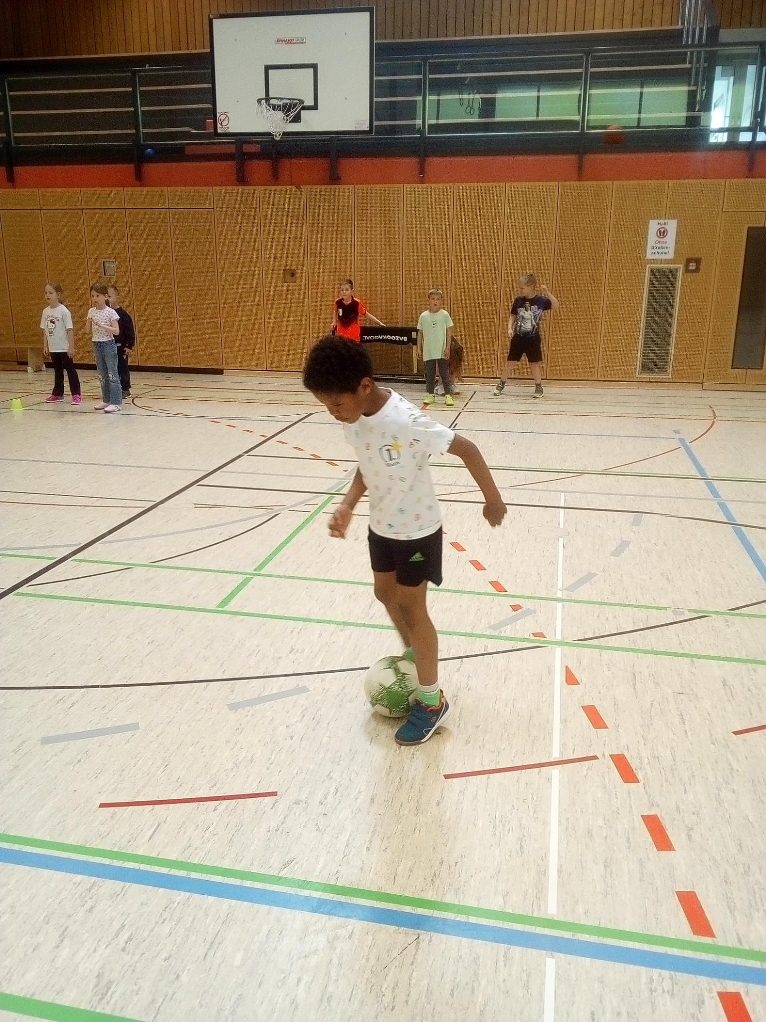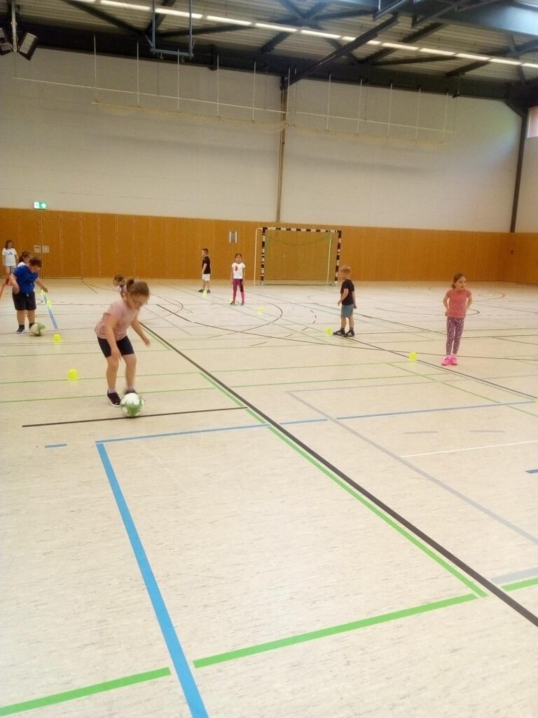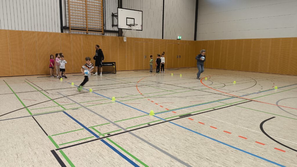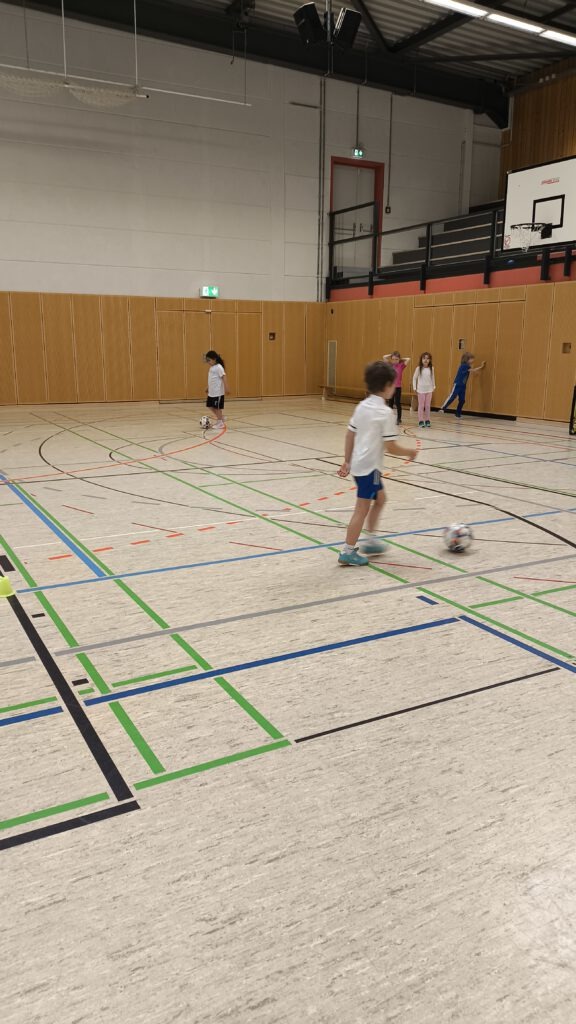 Unsere ersten Klassen durften die letzten April-Wochen in den Fußballsport schnuppern! Mit viel Engagement übten die Trainer Stefan Fleckenstein, Steffen Lippert und Johannes Hein vom FC Germania Unterafferbach verschiedene Techniken mit den Kindern und sorgten für viel Spaß und Bewegung in der Halle. Die Schülerinnen und Schüler konnten zeigen wie schnell sie mit dem Ball laufen und dribbeln können und passten den Ball ihrem Partner zu. Auch ein Abschlussspiel auf Tore durfte natürlich nicht fehlen.