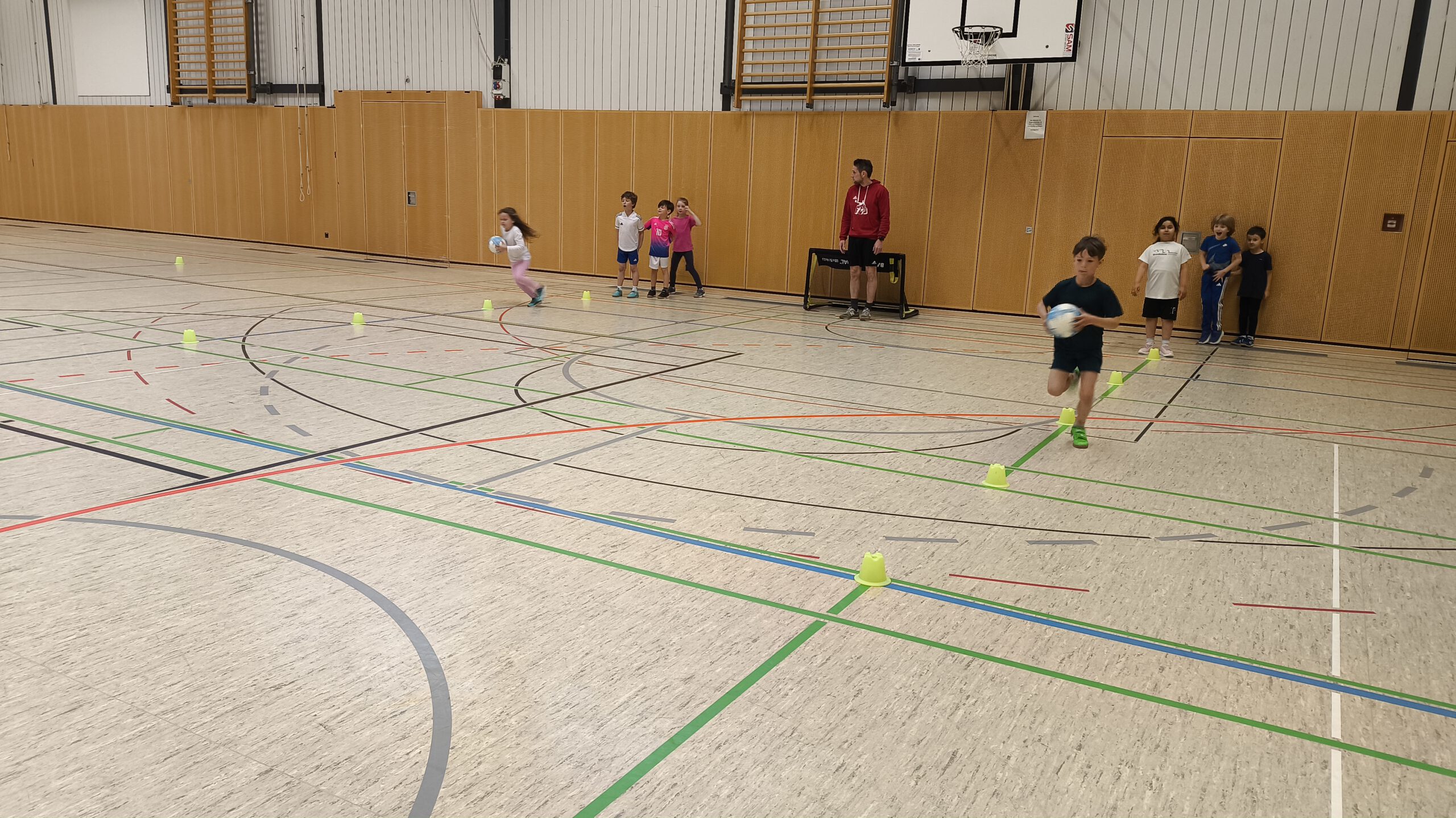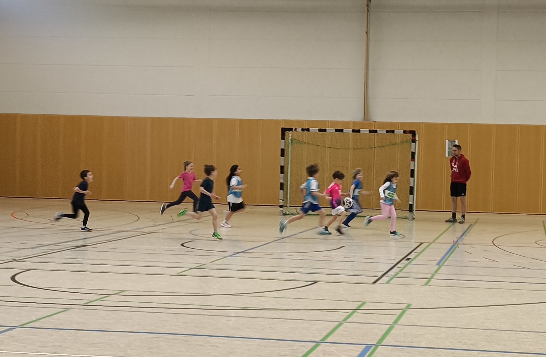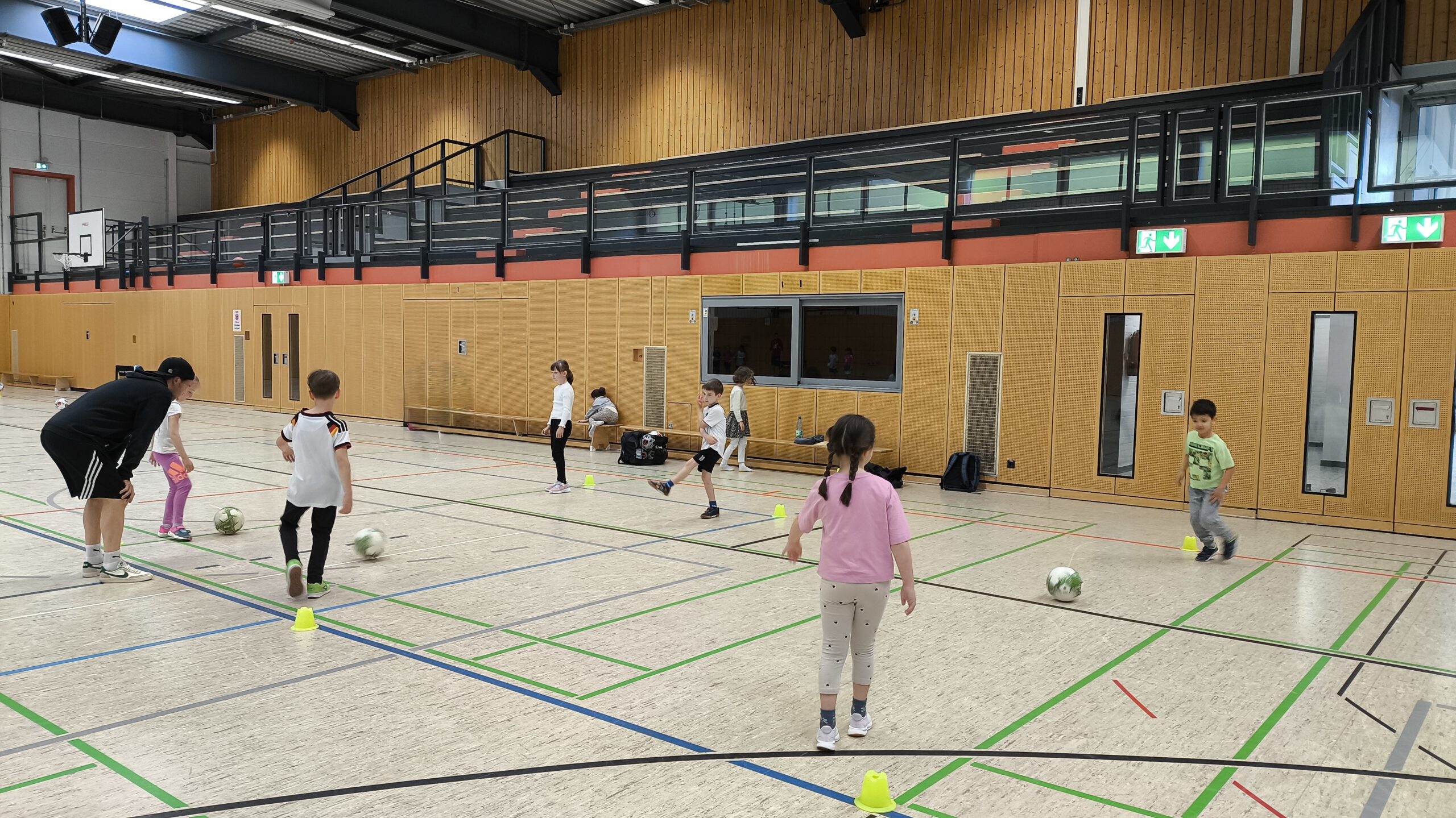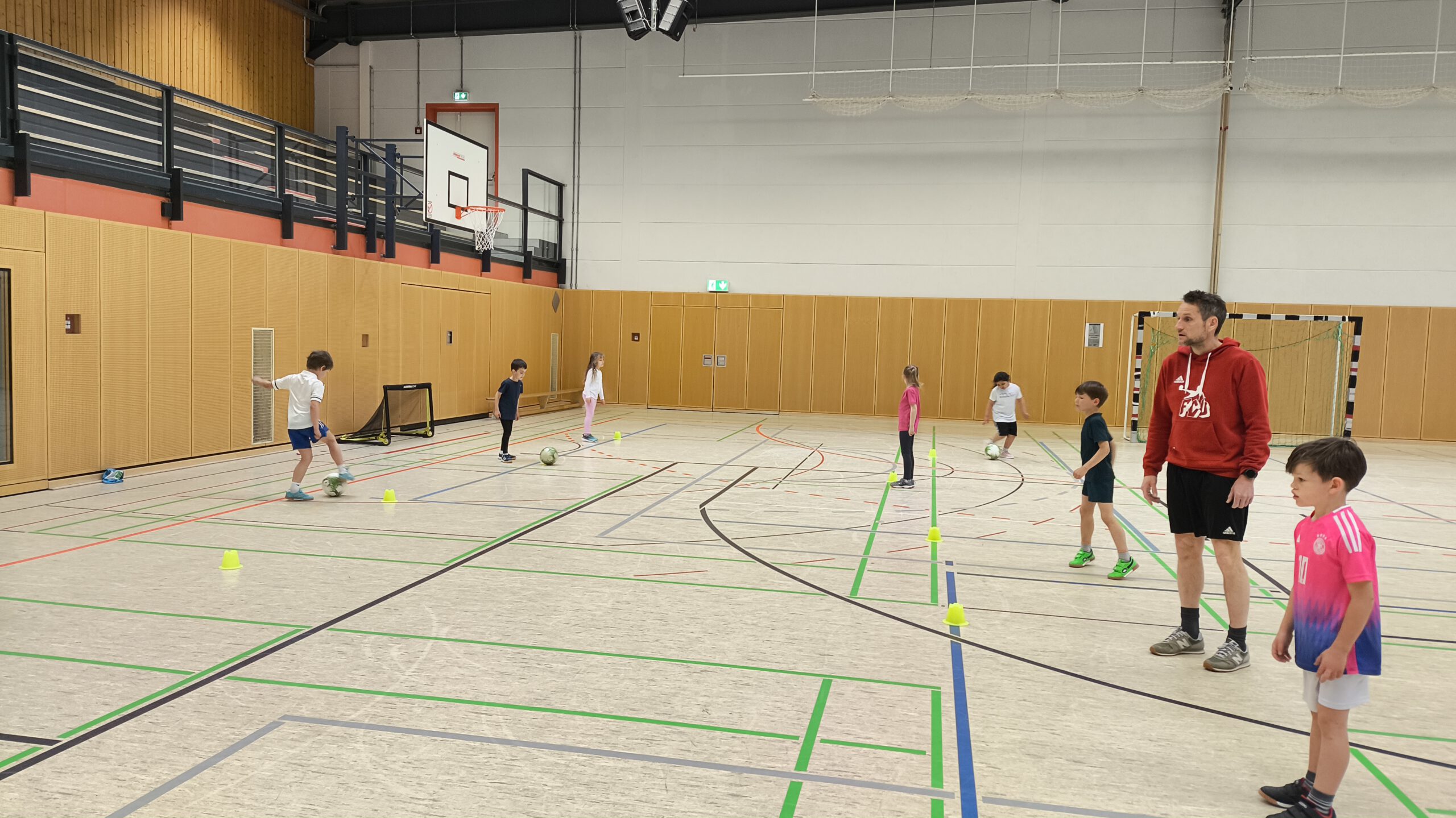 Unsere ersten Klassen durften die letzten April-Wochen in den Fußballsport schnuppern! Mit viel Engagement übten die Trainer Stefan Fleckenstein, Steffen Lippert und Johannes Hein vom FC Germania Unterafferbach verschiedene Techniken mit den Kindern und sorgten für viel Spaß und Bewegung in der Halle. Die Schülerinnen und Schüler konnten zeigen wie schnell sie mit dem Ball laufen und dribbeln können und passten den Ball ihrem Partner zu. Auch ein Abschlussspiel auf Tore durfte natürlich nicht fehlen.