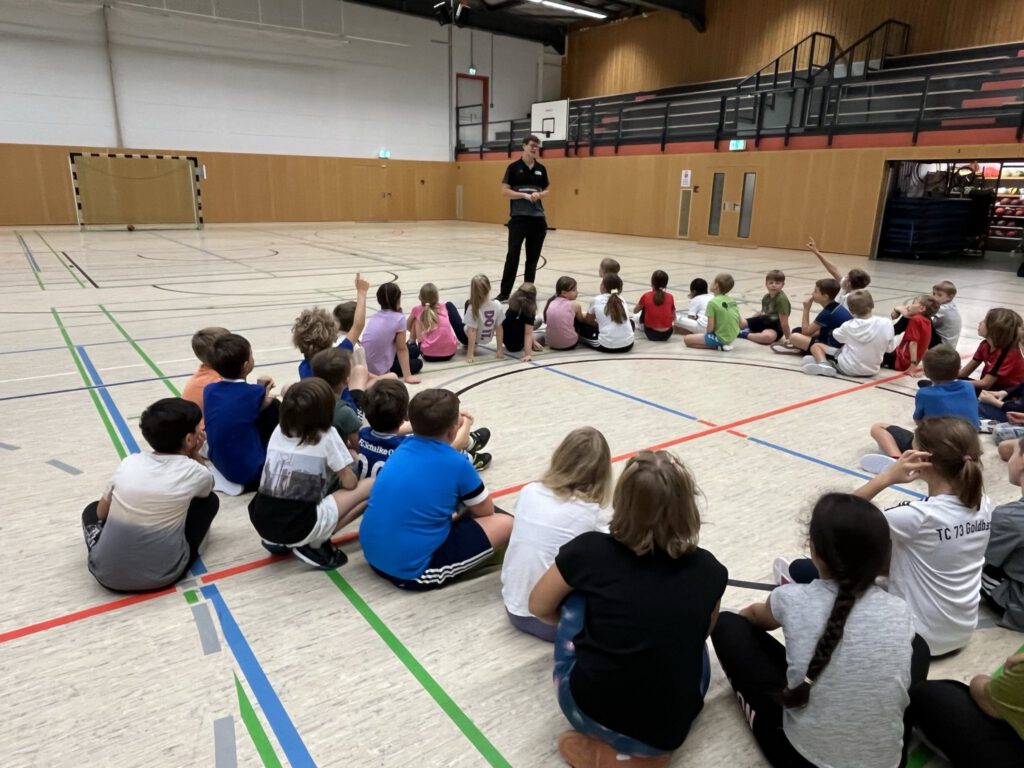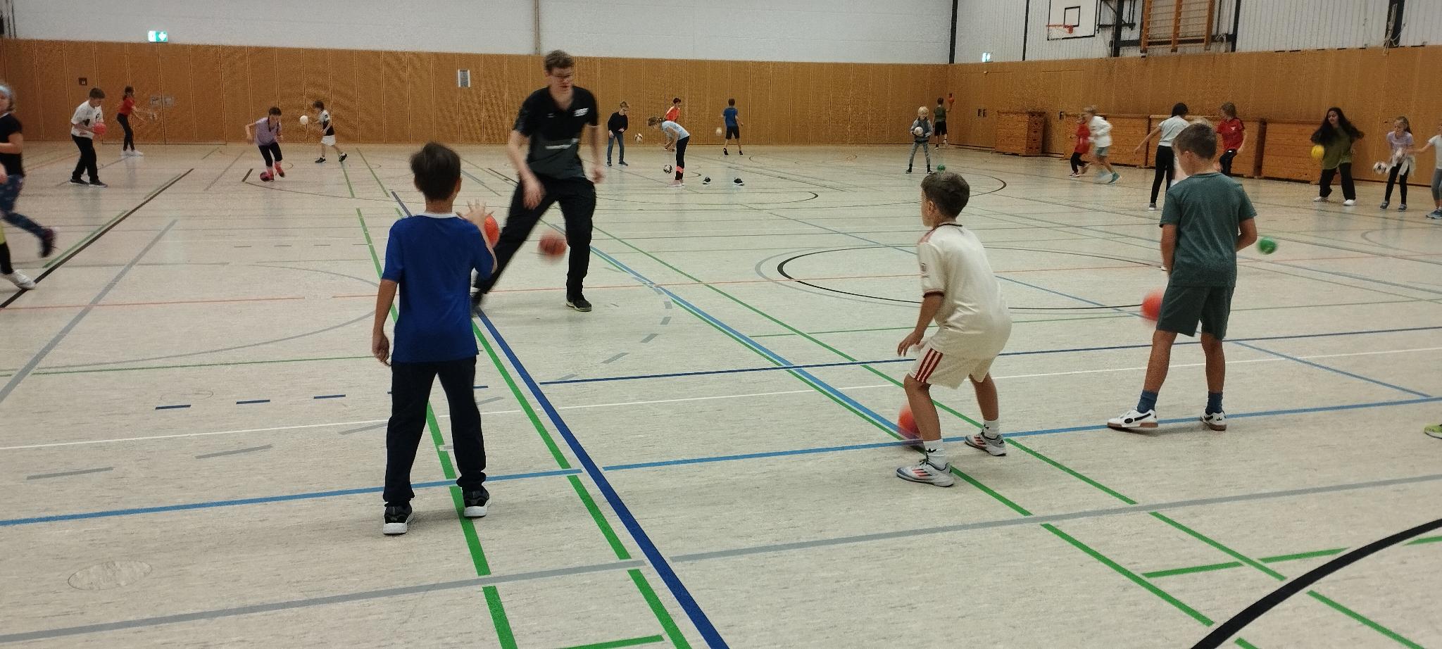 Am Dienstag, den 7. Oktober 2025, durften unsere Schülerinnen und Schüler der 4. Klassen in den Handballsport schnuppern. Matze von der HSG Aschafftal zeigte den Kindern wie man mit dem Ball dribbelt, passt und natürlich Tore wirft. Alle waren voller Eifer dabei!
