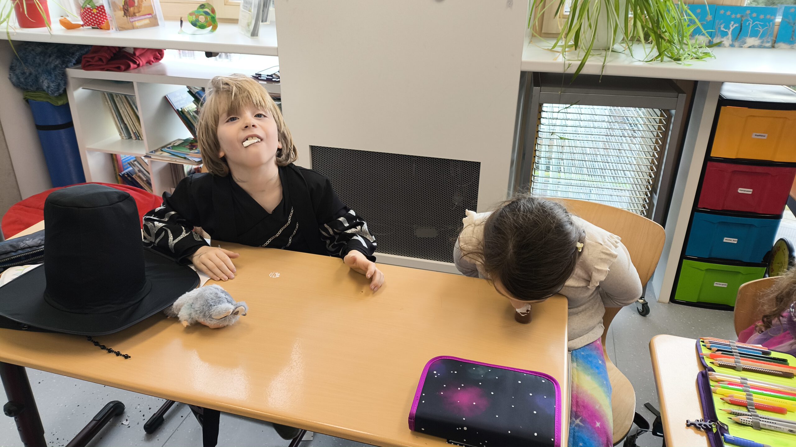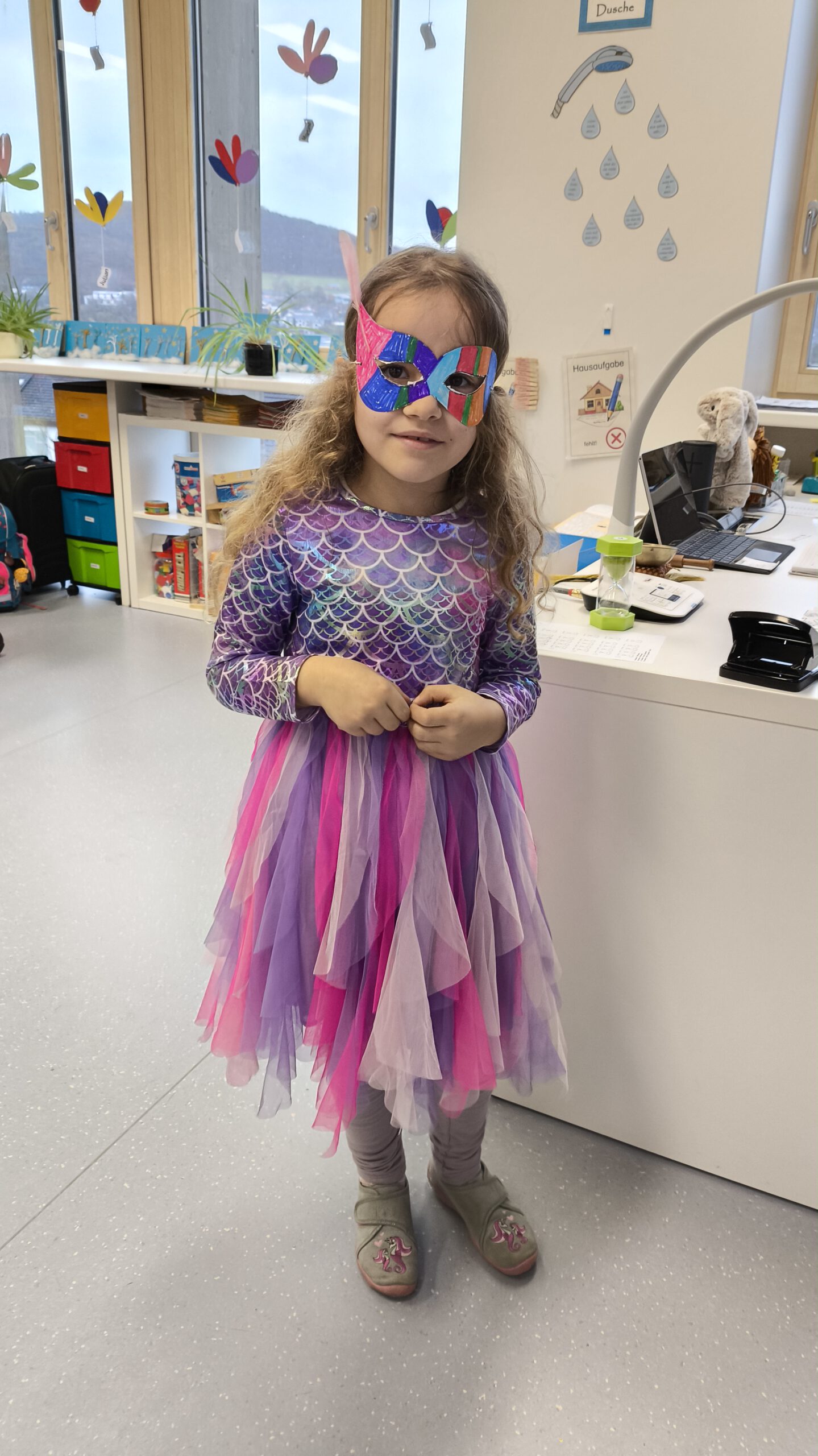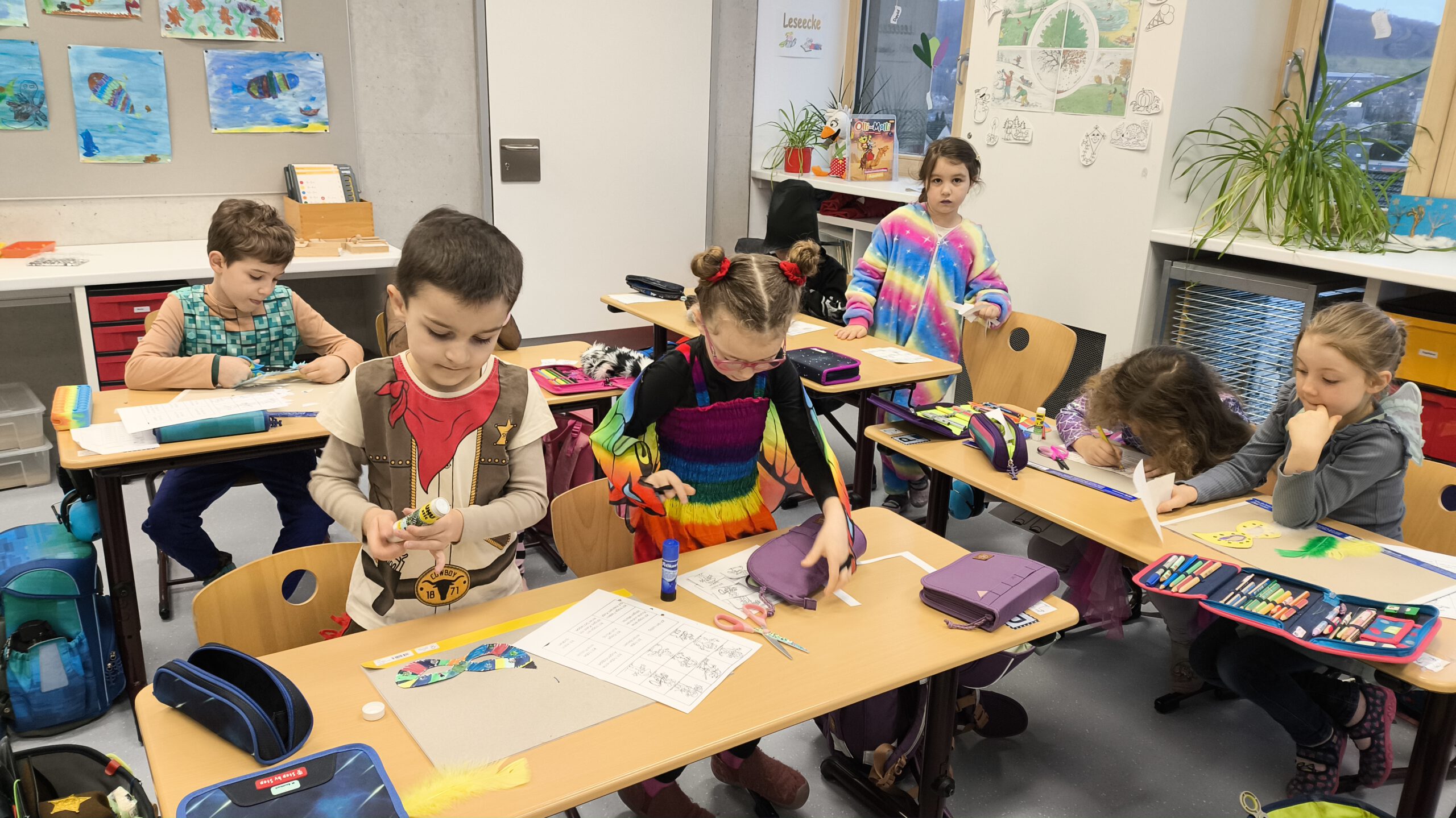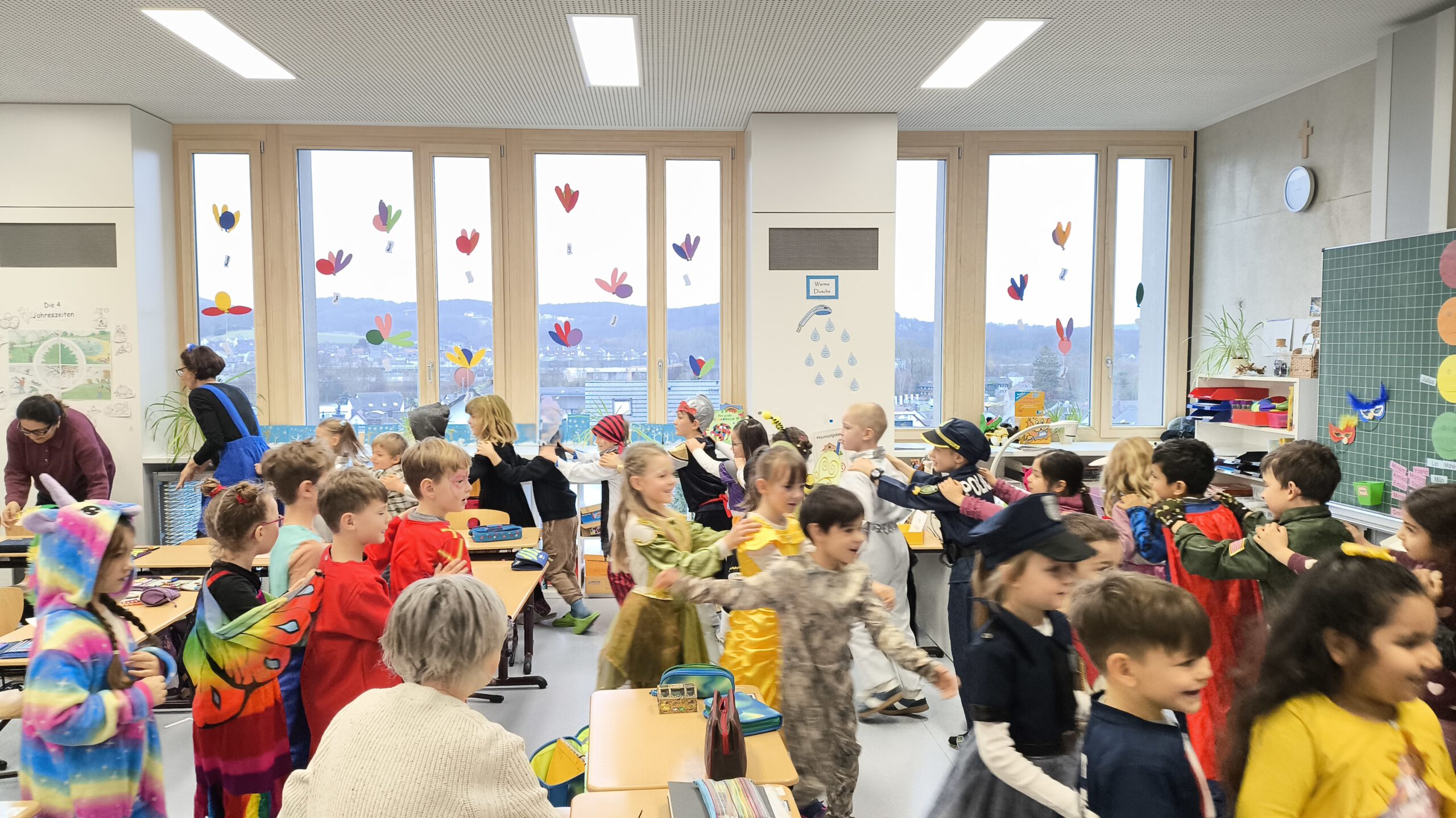 Am Freitag vor den Faschingsferien wurde es an der Grundschule in Goldbach bunt! In den Klassenzimmern waren Piraten, Polizisten, Einhörner, Feen und vieles mehr zu finden. Normale Kinder? – Fehlanzeige! Lesen, Schreiben und Rechnen funktionierte an so einem Tag natürlich auch ganz anders: In den ersten Klassen mussten die verschiedenen Kostüme lesend erraten werden und es wurde mit Schokoküssen gerechnet. Selbstgebastelte Masken zierten dabei das ein oder andere Gesicht. Faschingsbingo und verschiedene Spiele ergänzten das lustige Treiben und sorgten für viel Spaß und Abwechslung.