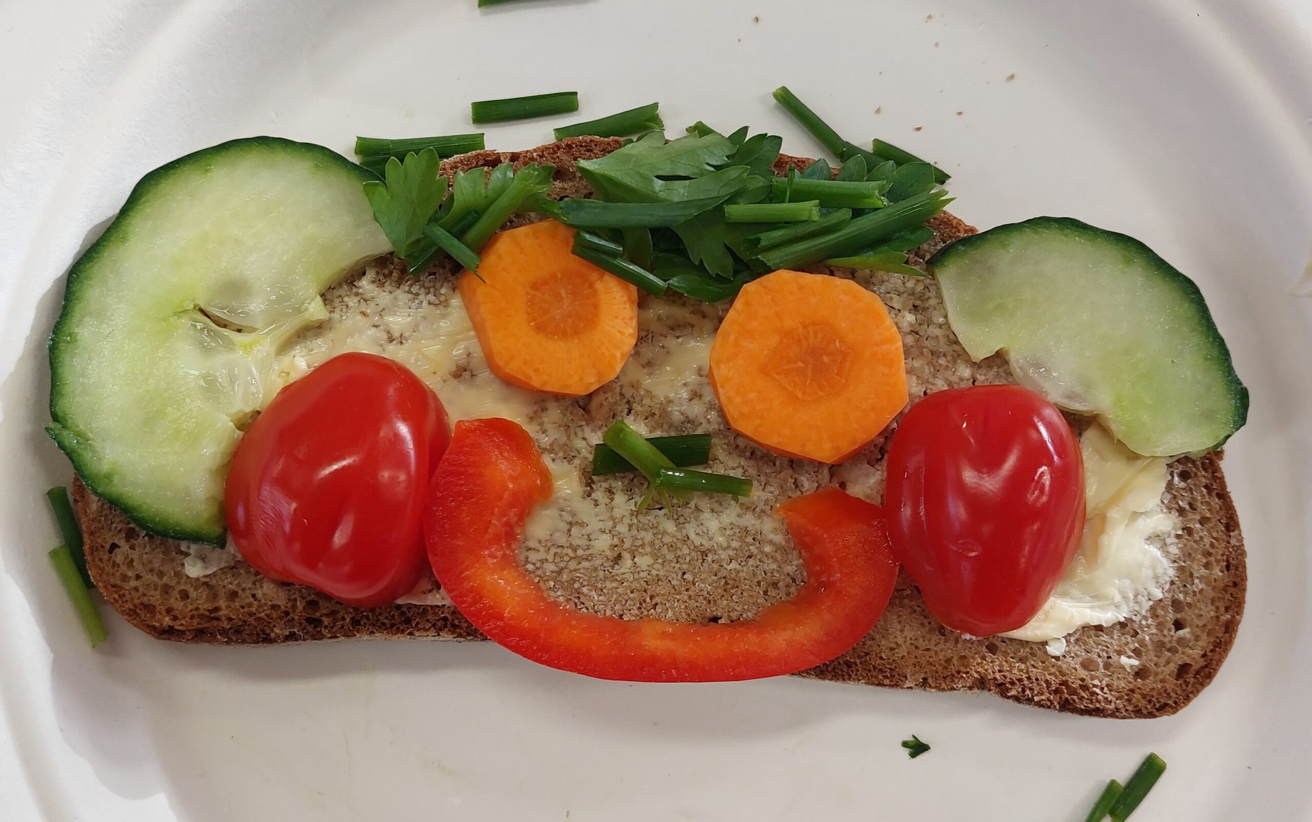 Statt „Süßes oder Saures“ hieß es diesmal „bunt und gesund“. Mit viel Freude und Fantasie legten die Kinder aus Paprika, Gurke, Karotte & Co lustige Gemüsegesichter auf ihre Brote. Dabei entstanden wahre Kunstwerke – und natürlich durfte anschließend auch gekostet werden.