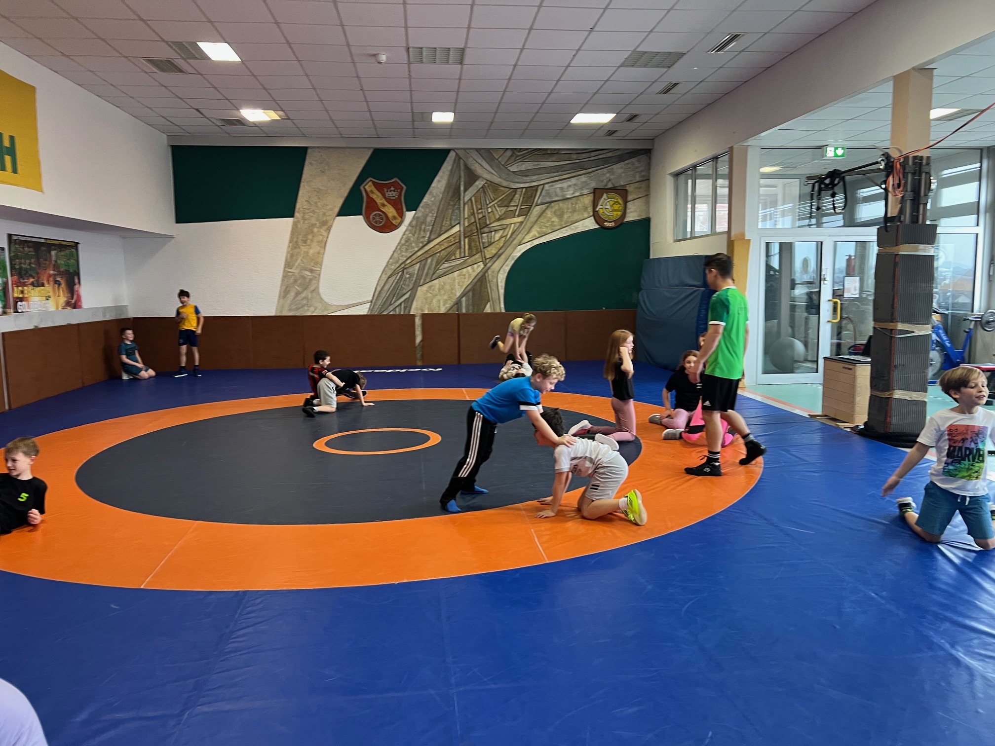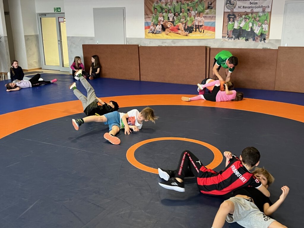 Im Rahmen eines Schnuppertrainings durften die Schülerinnen und Schüler der Klasse 3a den Ringersport näher kennenlernen. Herr Maier, Trainer des AC Bavaria Goldbach und Schülervater, gab den Kindern einen spannenden Einblick in diese vielfältige Sportart. Die Kinder wurden in erste Ringertechniken eingewiesen und durften diese auf der Matte ausprobieren. Spiel und Spaß kamen dabei natürlich auch nicht zu kurz! Mit viel Begeisterung, Bewegung und Freude konnten alle aktiv mitmachen und so manch eine/r bekam sogar Lust auf mehr und könnte sich gut vorstellen, den Ringersport im Rahmen des Jugendtrainings weiter kennenzulernen. Ein herzliches Dankeschön an Herrn Maier und dem AC Bavaria Goldbach für die interessanten Einblicke!