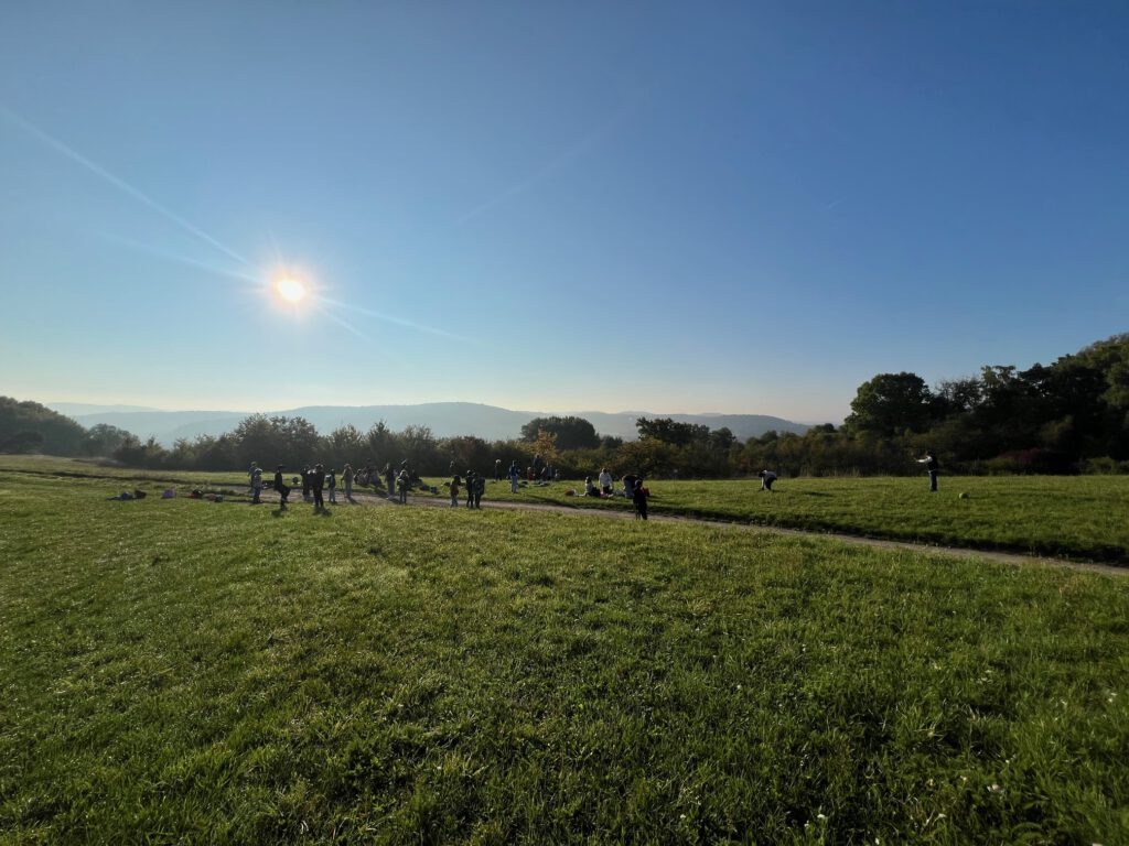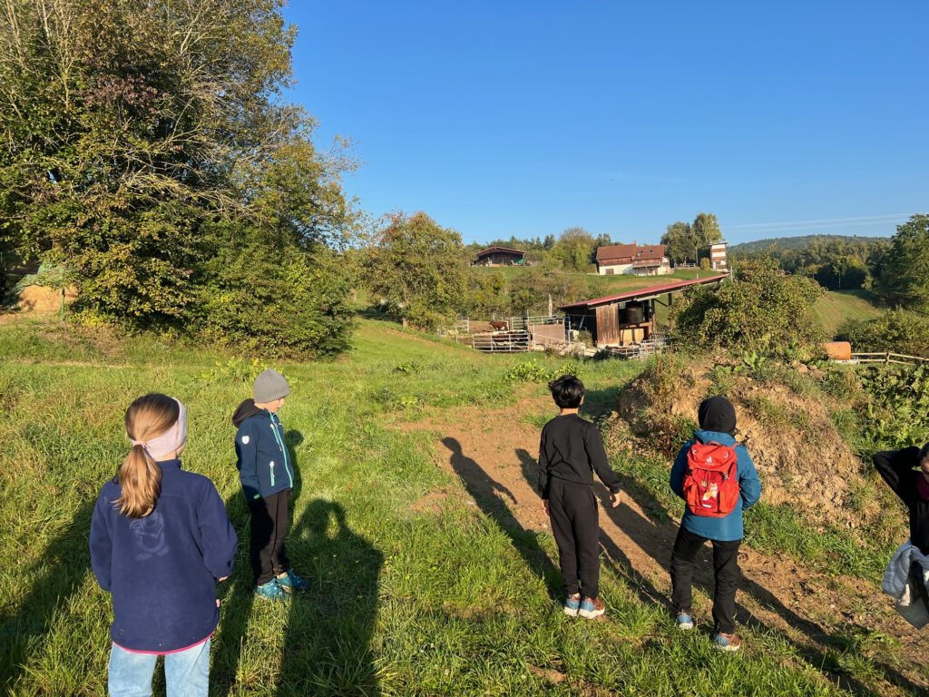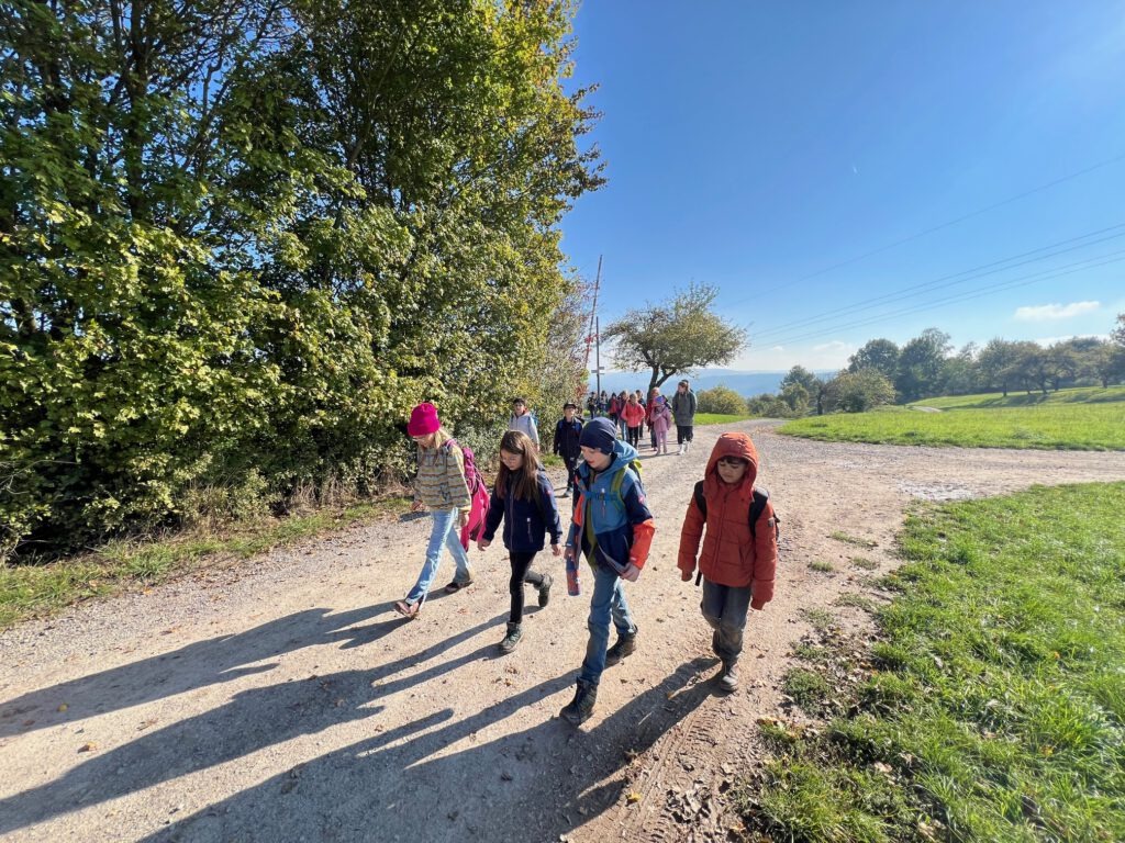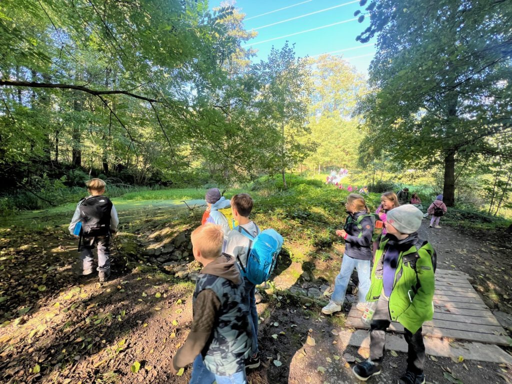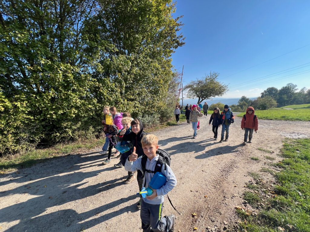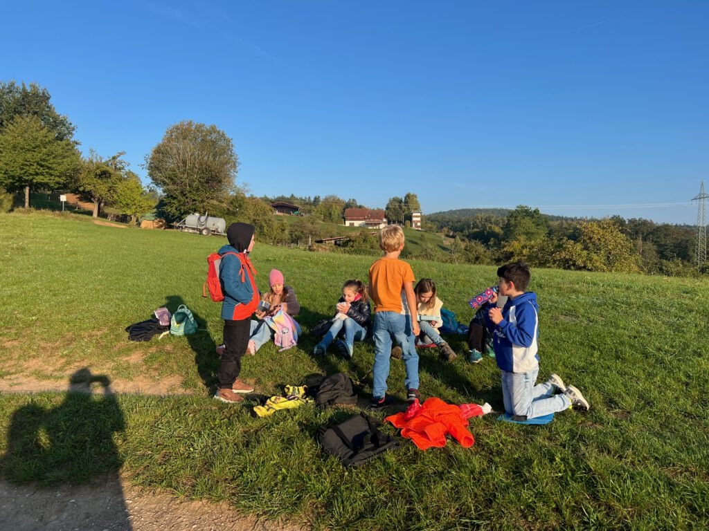 Am 2. Oktober machten sich die Klassen 3a und 3c gemeinsam auf den Weg. Bei strahlendem Sonnenschein wanderten wir über den Dormeswald zum MSC-Gelände. Dort legten wir eine gemütliche Pause ein und nutzten die Zeit, um uns auszutoben und die Natur zu genießen.Wir vergnügten uns mit verschiedenen Spielen, pflückten bunte Blumen und hatten sogar Besuch von einem freundlichen Hund, mit dem viele Kinder begeistert spielten. Nach der Pause ging es gut gelaunt weiter – unser Weg führte uns durch den Wald zurück in Richtung Schule.